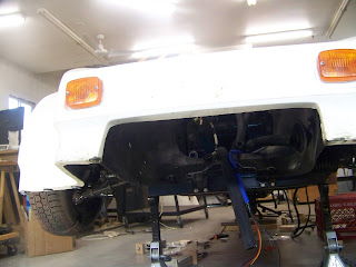 After me and wifey put the body on, and off, and on, and off, etc. many times, I got the cooling system hoses measured and cut to length. It is VERY tight quarters up front where the radiator, heater core, and headlights mount - I'll try to take a picture. I removed the headlight bucket to paint it since you really can't remove it with the radiator installed unless you have 3" (dia.) arms and are very flexible. Also got the throttle cable installed with and extra return spring to ensure throttle closes when you're off the petal. Going to install the headlight bucket, radiator, and all hoses next. Then bolt down the body to the frame and install the steering column and wheel. Here's a short video and some pics: